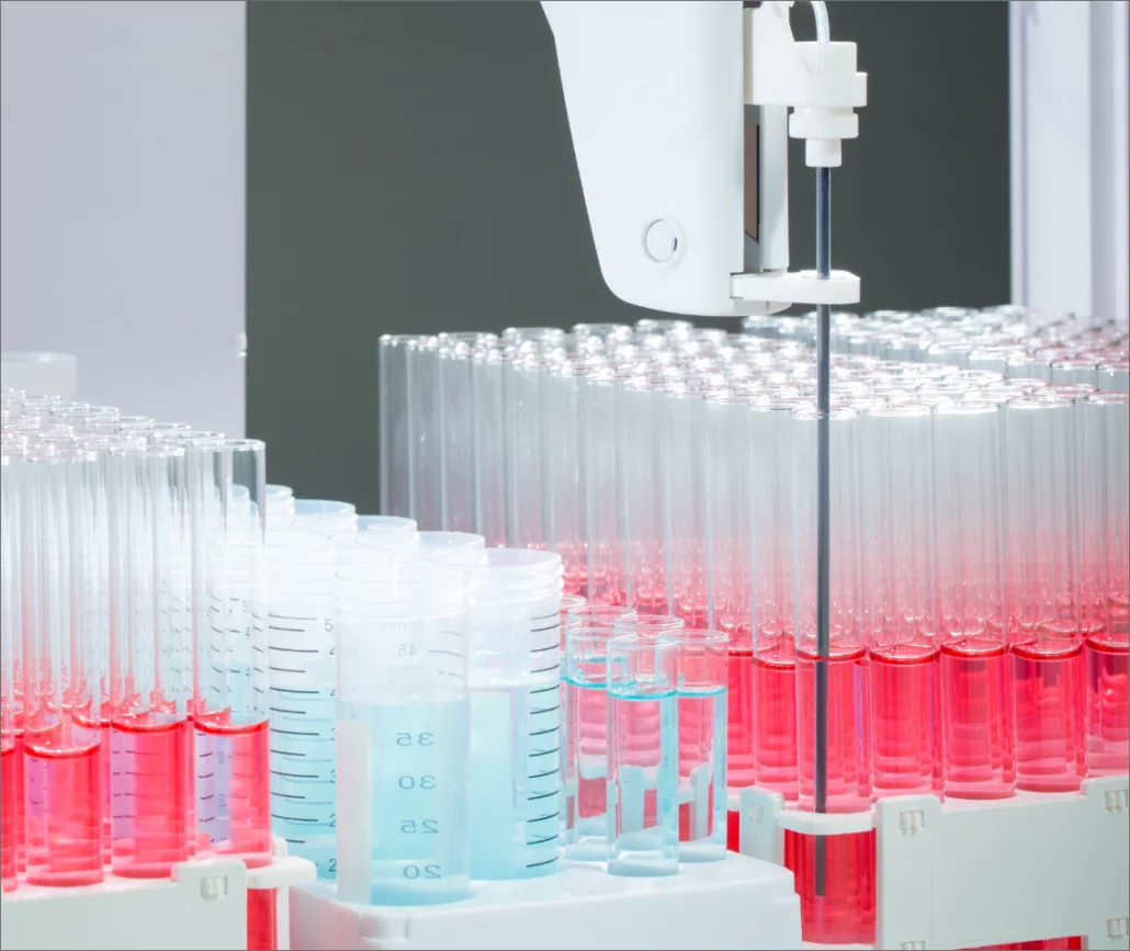 The AIM4000 autosampler* is the newest autosampler with a design that has the electronics in the upper gantry away from sample and wash fluids optimising the available footprint for the use of samples and standards.